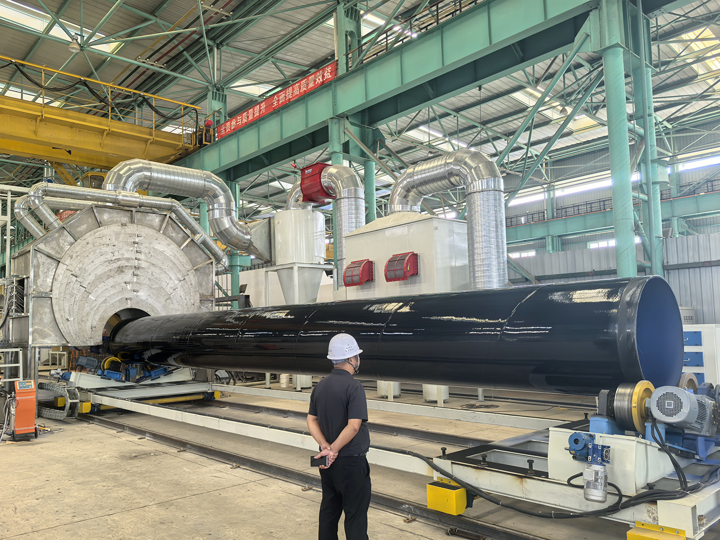 钢管检测→内壁除锈→内吹扫→中频加热→内外壁喷涂→涂层固化